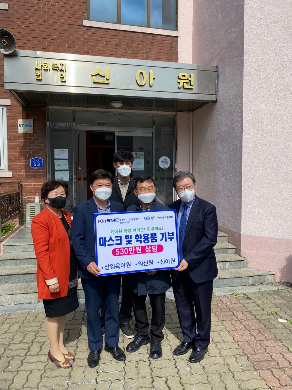 2021년 4월6일 신아원에서 중소벤처기업진흥공단의 후원물품 전달식을 진행하였습니다.
